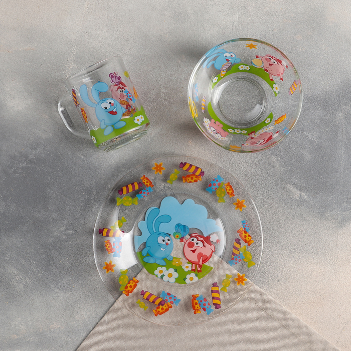 От качества посуды зависит не только вкус еды, но и здоровье человека. Набор "Смешарики. Конфеты" кружка 250 мл, салатник d=13 см, тарелка d=19,5 см, в подарочной упаковке — товар, соответствующий российским стандартам качества. Любой хозяйке будет приятно держать его в руках. С нашей посудой и кухонной утварью приготовление еды и сервировка стола превратятся в настоящий праздник.