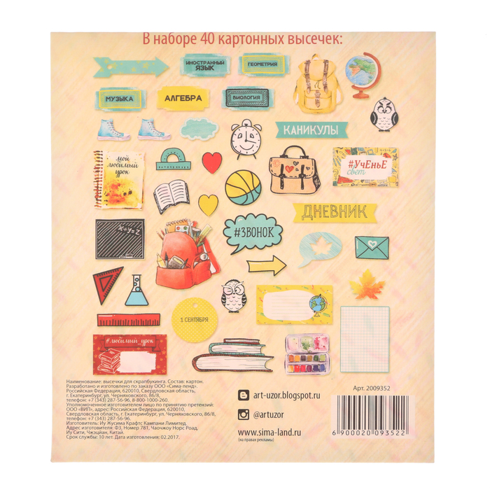 Набор декоративных элементов «Школьная пора», 10 х 14 см