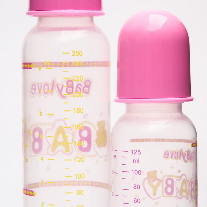 Набор детский, 3 предмета: бутылочки для кормления 125 и 250 мл, пустышка силиконовая ортодонтическая, от 0 мес., цвет розовый