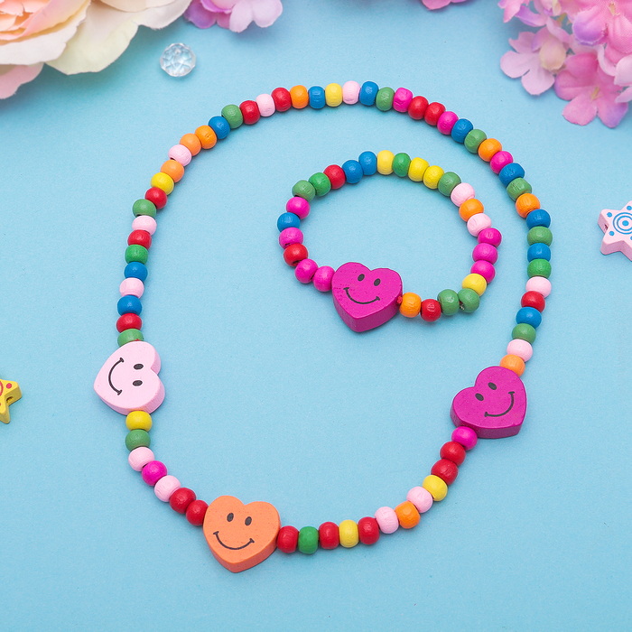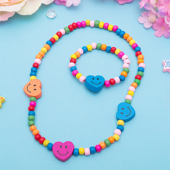 Набор детский "Выбражулька" 2 предмета: бусы, браслет, смайлики сердце, цвет МИКС