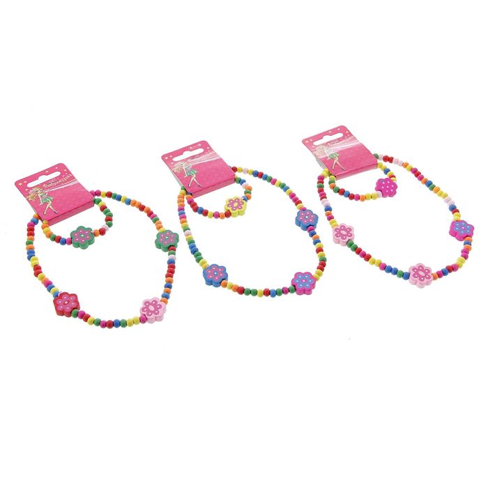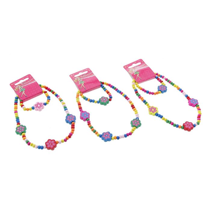 Набор детский "Выбражулька" 2 предмета: бусы, браслет, цветочки нежные, цвет МИКС