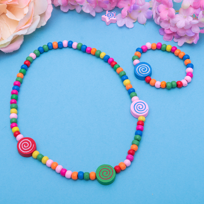 Набор детский "Выбражулька" 2 предмета: колье, браслет, круглые спиральки, цвет МИКС