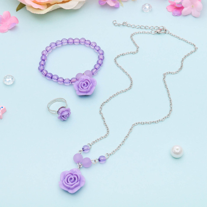 Набор детский "Выбражулька" 3 предмета: кулон, браслет, кольцо, цвет МИКС