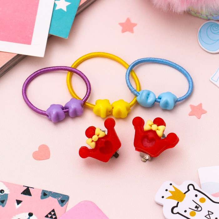 Набор детский "Выбражулька" 4 предм: 3 резинки, клипсы, звездочки, цвет МИКС