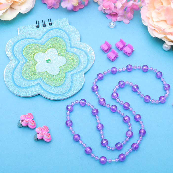 Набор детский "Выбражулька" 7 предметов: 4 краба, клипсы, бусы, блокнот МИКС, бабочки, цвет фиолетовый