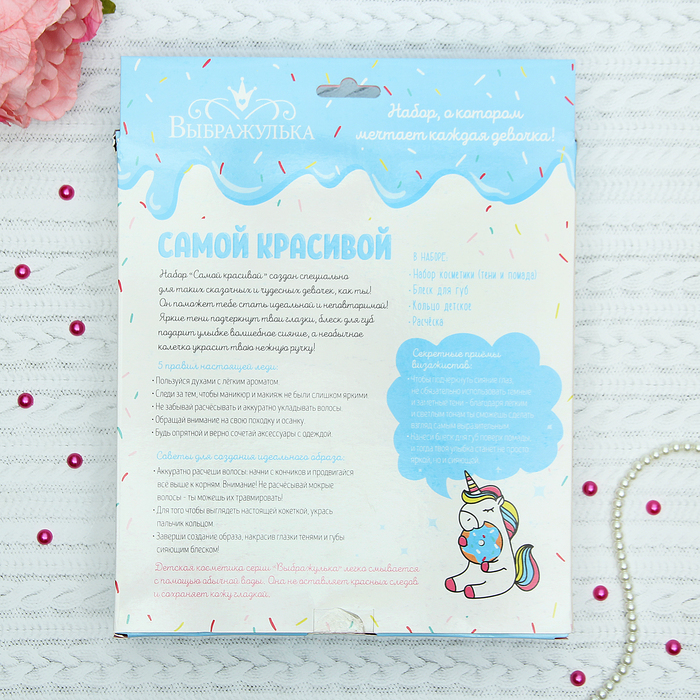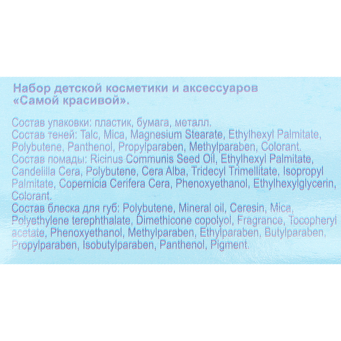 Набор детской косметики и аксессуаров "Самой красивой" — то, что нужно юной девчонке. С помощью этого средства она будет блистать своей красотой, радоваться и любоваться собой перед зеркалом. А самое главное, продукт не раздражает детскую кожу.