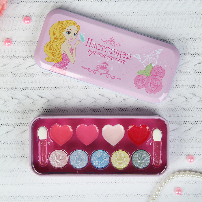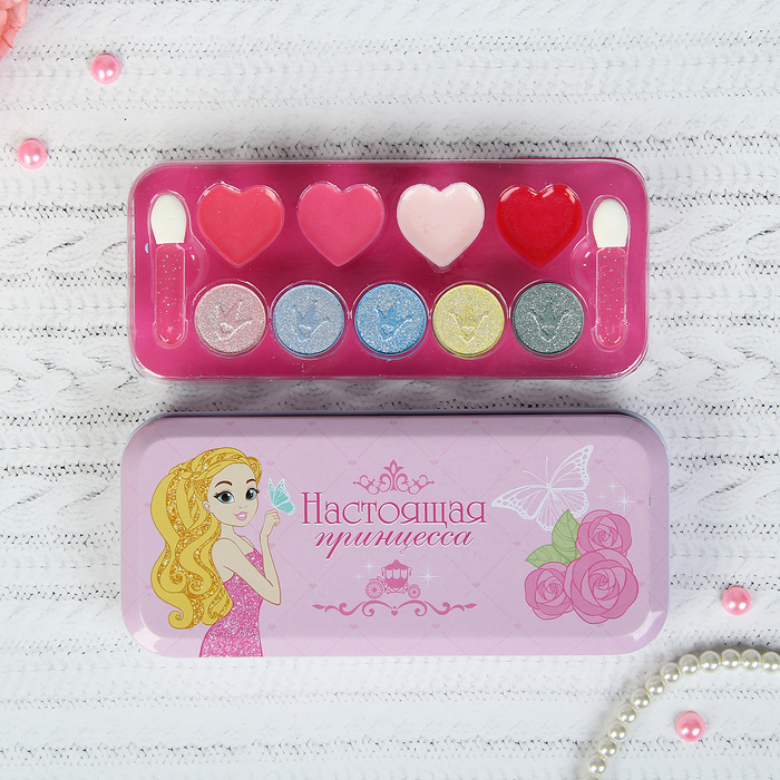 Набор детской косметики "Настоящая принцесса", палетка теней и блесков в пенале