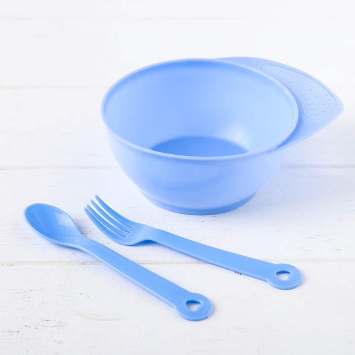 Набор детской посуды, 3 предмета: миска 350 мл, ложка, вилка, от 5 мес., цвета МИКС