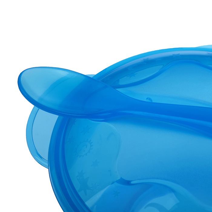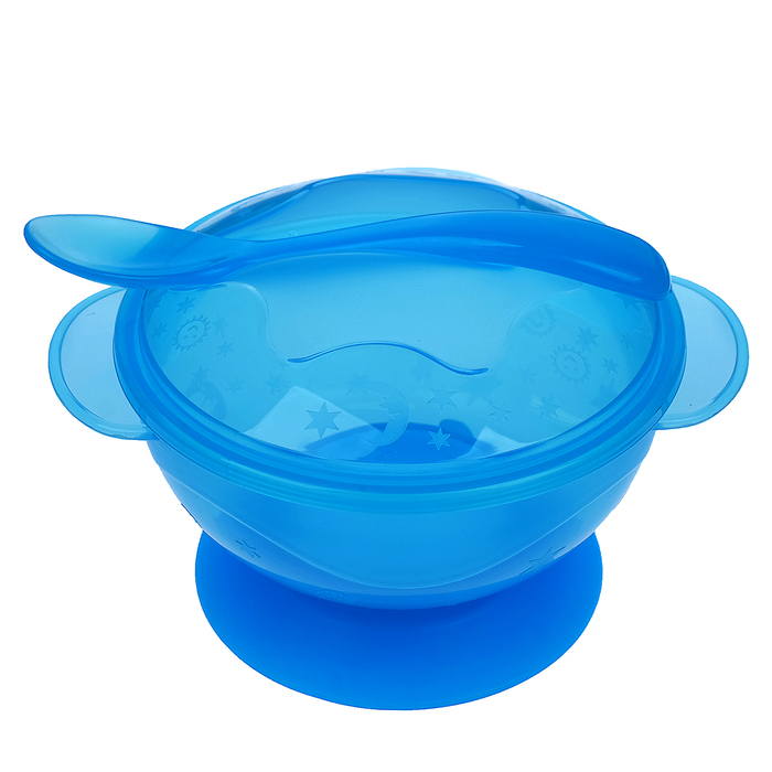 Набор детской посуды, 3 предмета: миска на присоске 500 мл, крышка, ложка, от 5 мес., цвет голубой
