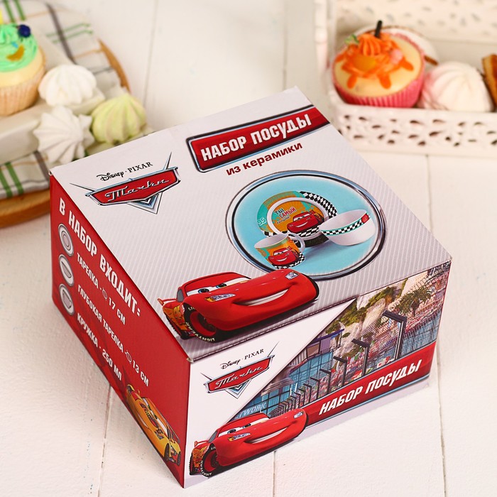 Набор детской посуды "Наш чемпион" Тачки, 3 предмета, тарелка, пиала, кружка
