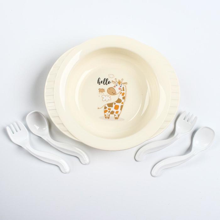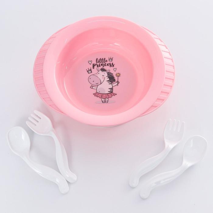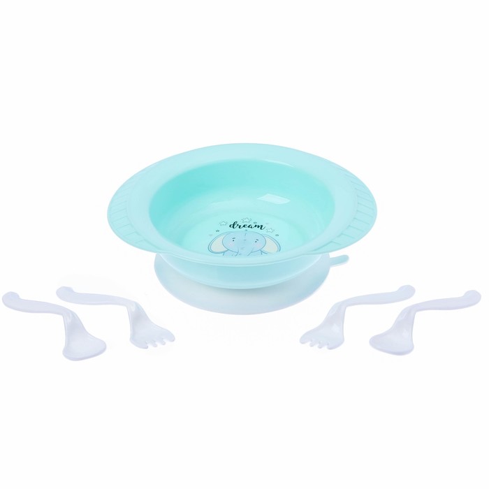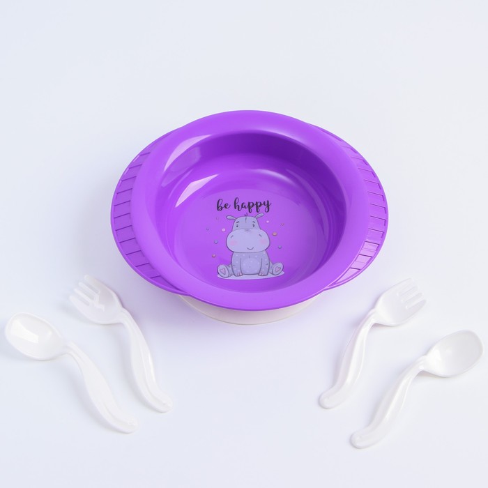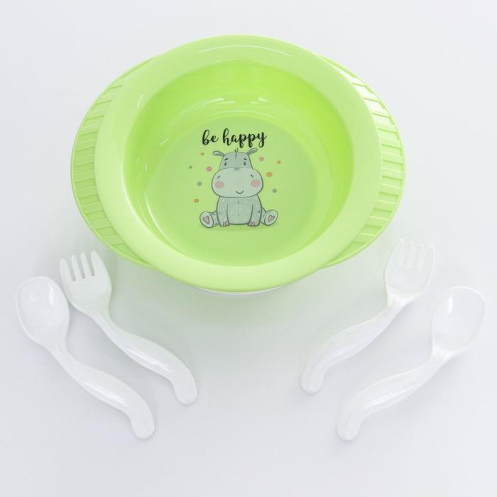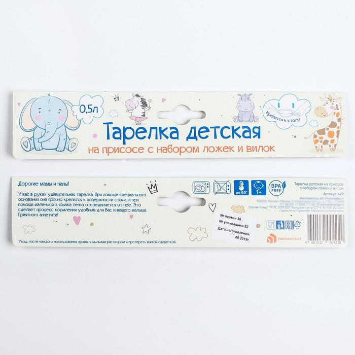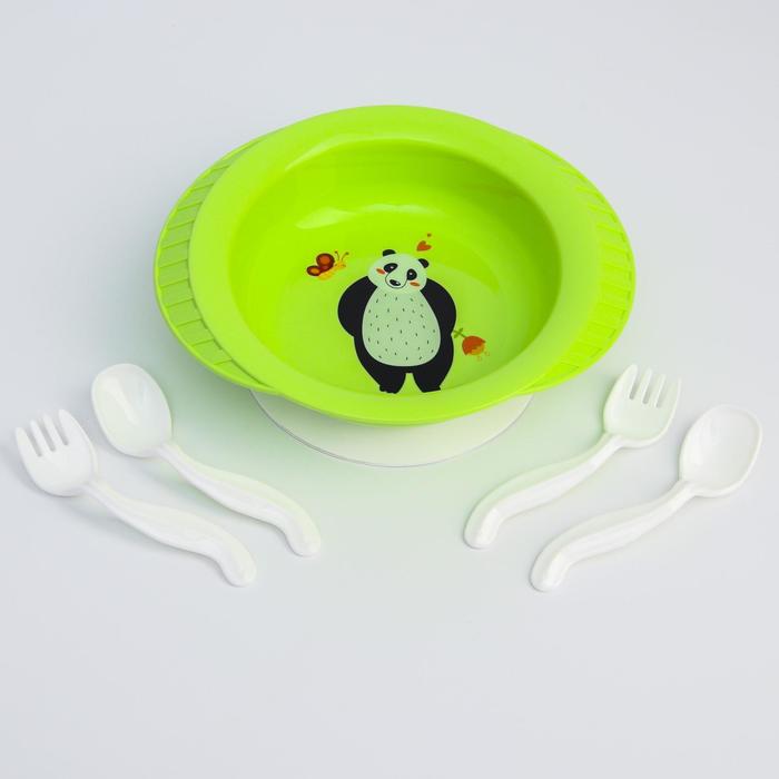 Набор детской посуды: тарелка на присоске, 500 мл, ложка, 2 шт., вилка, 2 шт., цвета МИКС