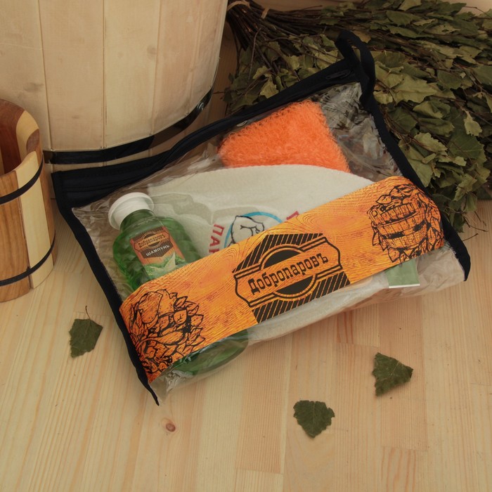 Набор для бани в косметичке "Герой парилки" шапка, шампунь, мочалка, пилка