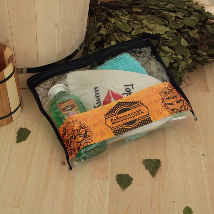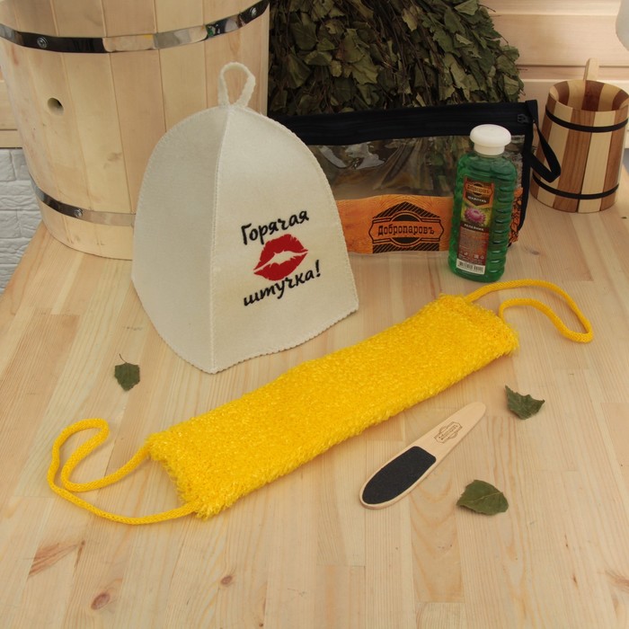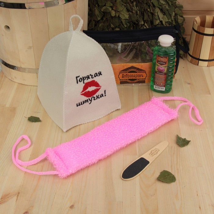 Набор для бани в косметичке "Горячая штучка" шапка, шампунь, мочалка, пилка