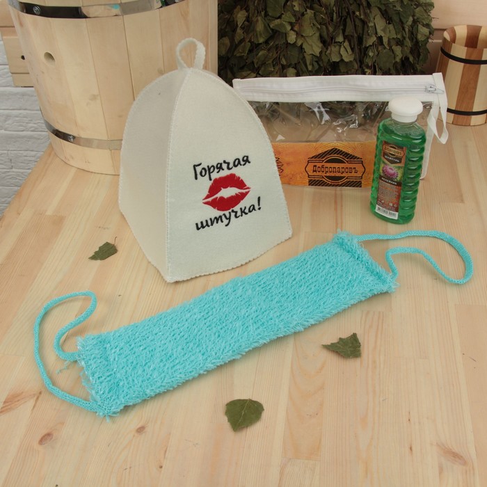 Набор для бани в косметичке "Горячая штучка" шапка, шампунь, мочалка