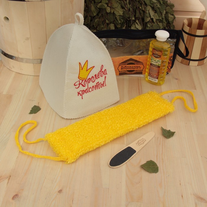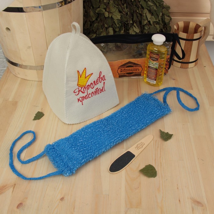 Набор для бани в косметичке "Королева красоты" шапка, шампунь, мочалка, пилка