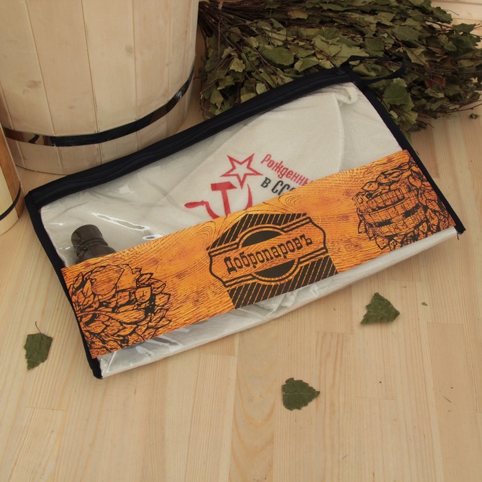 Набор для бани в косметичке "СССР серп и молот" шапка, масло, ароматизатор, коврик