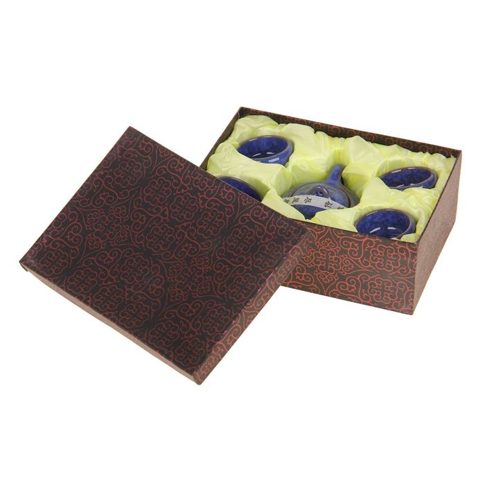 Набор для чайной церемон "Искушение", 5 предметов: чайник 150 мл, 4 чашки 50 мл, цвет синий УЦЕНКА