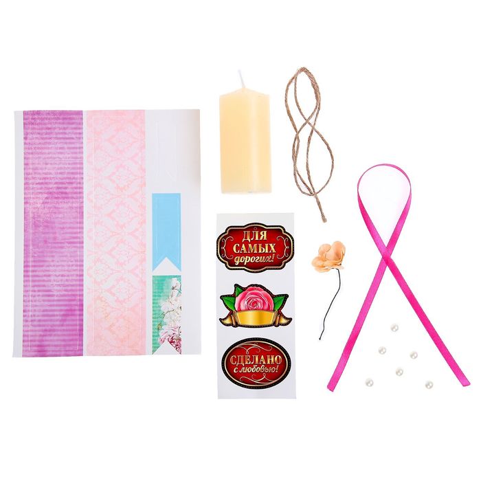 С помощью набора для декора вы превратите обычную свечу в авторский подарок. Украсьте её бумажными элементами и лентой, прикрепите небольшую открытку из набора и вручите такой презент близкому человеку.