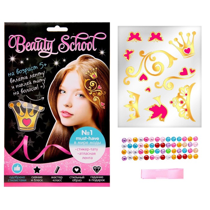 Стикерные тату дадут вам возможность поэкспериментировать со своей внешностью и сделать её модной и запоминающейся. Набор для декорирования волос поможет добавить причёске блеска с помощью специальных удобных наклеек, сверкающих страз и атласной ленты. Предметы легко крепятся, снимаются и не пачкаются.