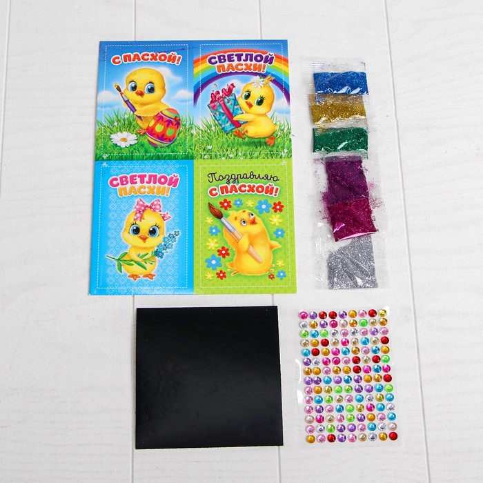 Набор для декорирования яиц "С Пасхой"+ трафареты, блестки 6 цветов по 2 гр., стразы