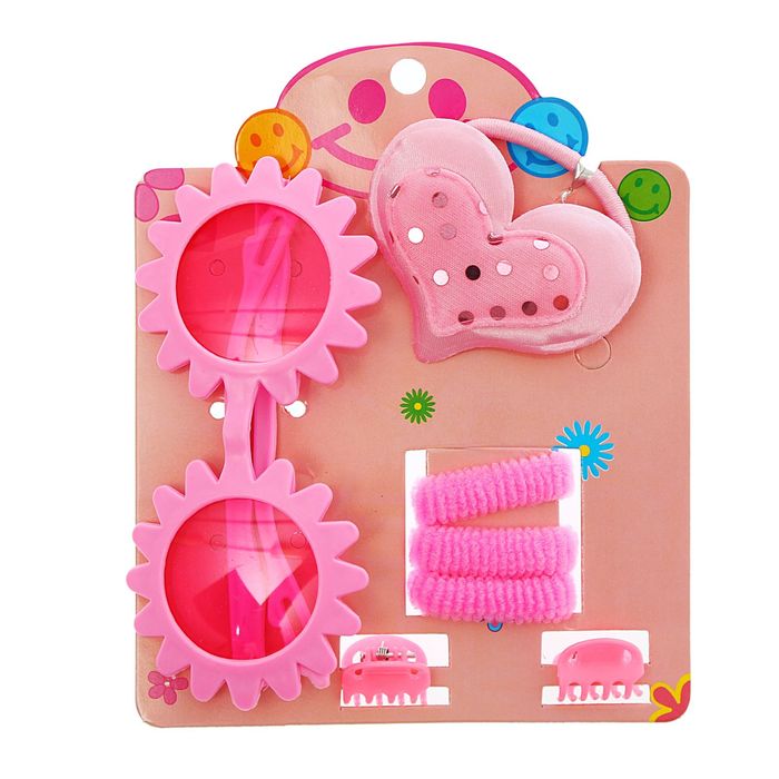 Набор для девочки "Милашка", 7 предметов: очки, 4 резинки, 2 крабика