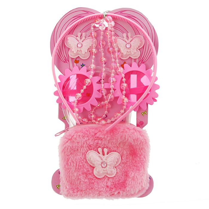 Набор для девочки "Модница", 6 предметов: очки, ободок, 2 резинки, бусы, сумка — отличный комплект для юной принцессы!