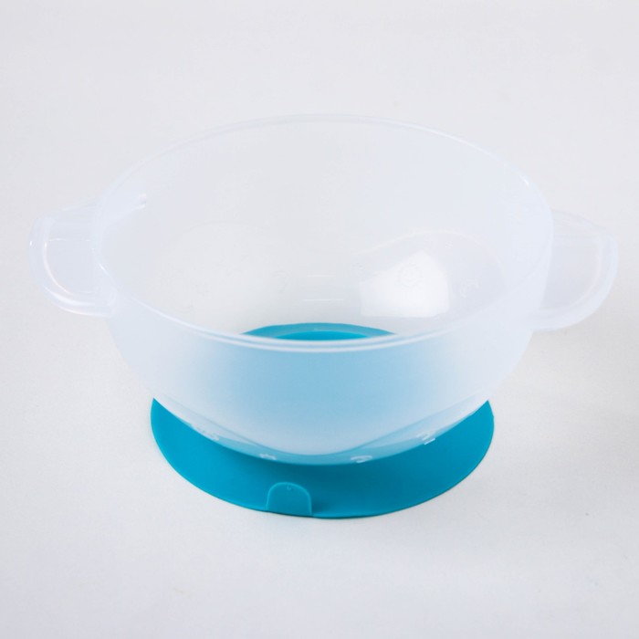 Набор для кормления, 3 предмета: миска 300 мл, крышка, ложка, цвет голубой