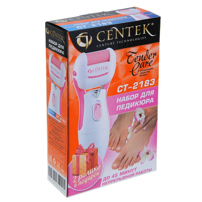 Набор для педикюра Centek CT-2183, пемза, 2 дополнительный ролика, 2хАА в комплекте, розовый