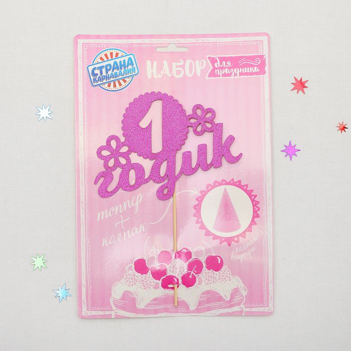 Набор для праздника "1 годик"малышка (топпер+колпак), цвет розовый