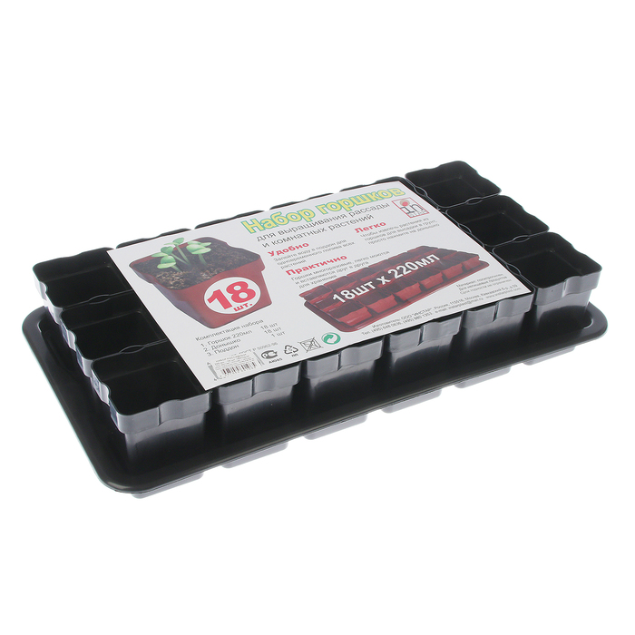 Набор для рассады: стаканы - 18 шт. по 200 мл, поддон 43 х 23 см, чёрный