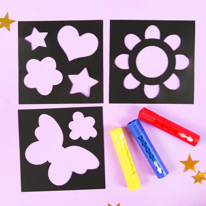 Набор для рисования мелками в ванной "Чудесный день!", трафареты 3 шт., мелки 3 цвета