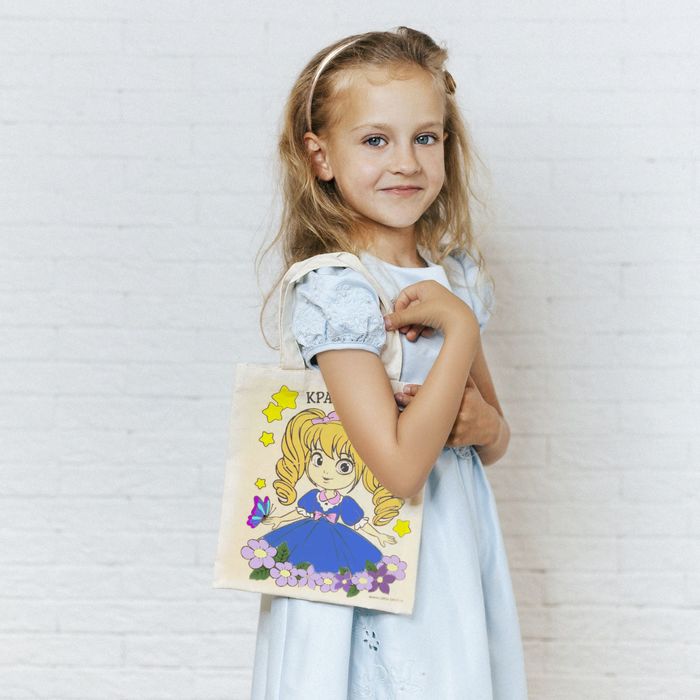 Расписывать сумку занимательно и несложно: на ней уже нанесены контуры рисунка, так что ребёнку нужно только придать забавным персонажам цвет кистью и красками, входящими в комплект.
