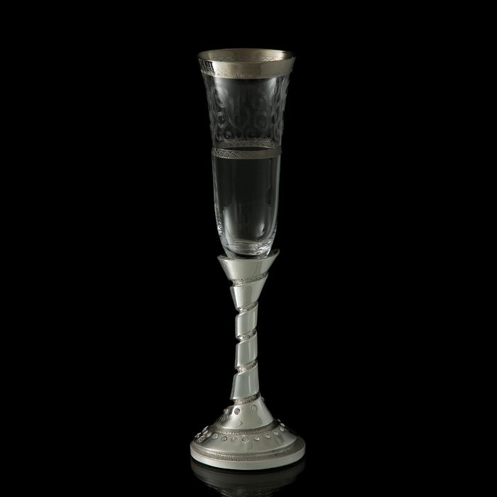 Утонченный набор бокалов для шампанского с невероятно романтичным названием — «Франчакорта». Это небольшая территория на севере Италии, где вот уже на протяжении более 50-ти лет производят одни из лучших игристых. Вы только взгляните на эту композицию из шести бокалов, которые стоят на устойчивой спиралевидной ножке, покрытой серебром и перехваченной узорчатым пояском. Каждый предмет этого изысканного набора выполнен из хрусталя, сквозь который можно увидеть ровные поблескивающие пузырьки элитного напитка.
