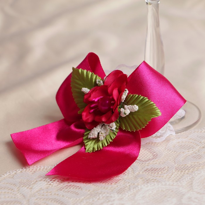 Набор для шампанского "Вдохновение", корзинка+ украшение на бокалы, малиновый