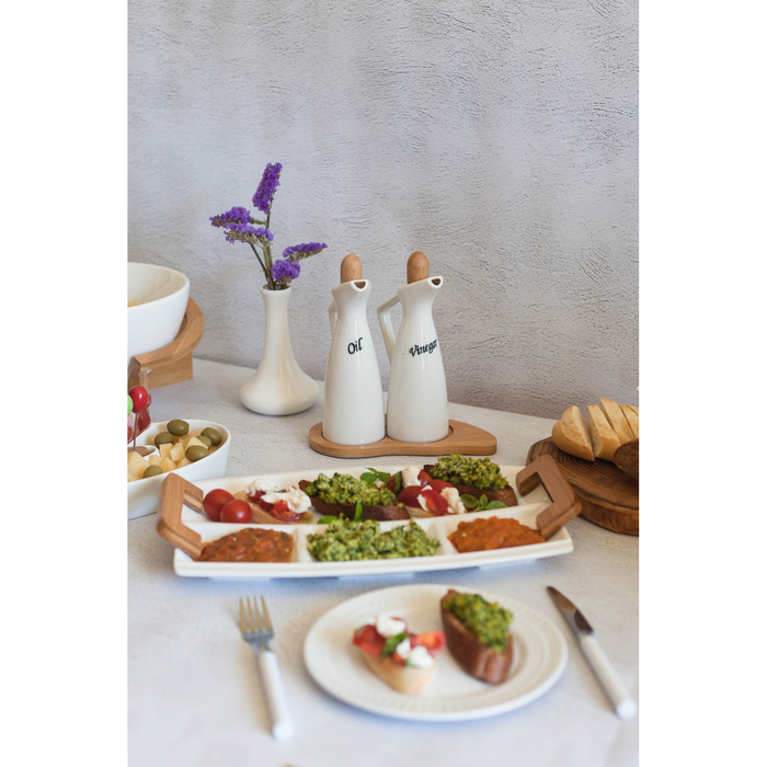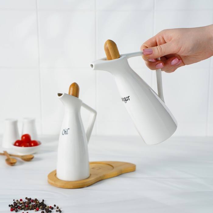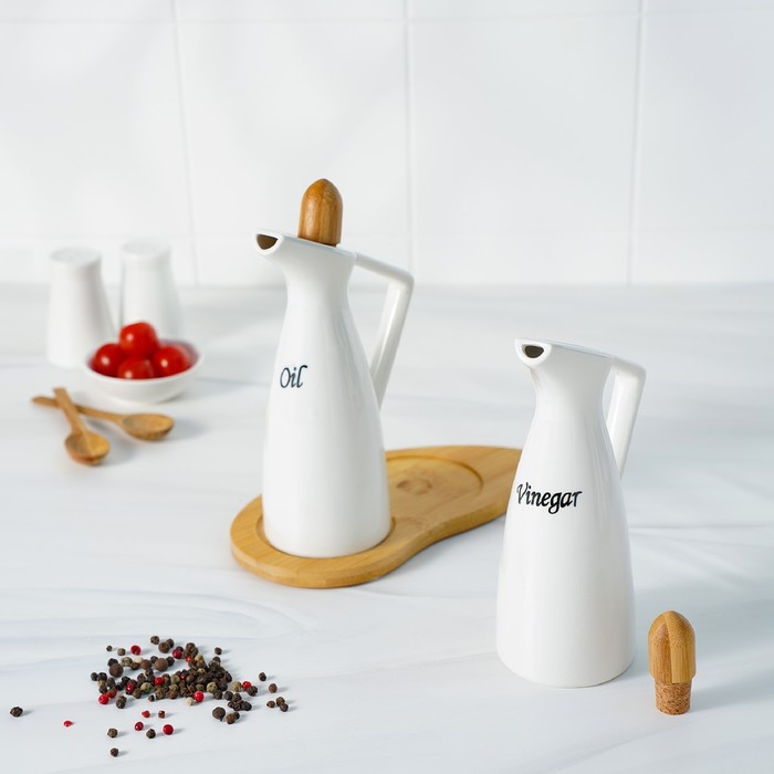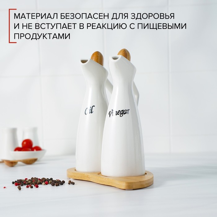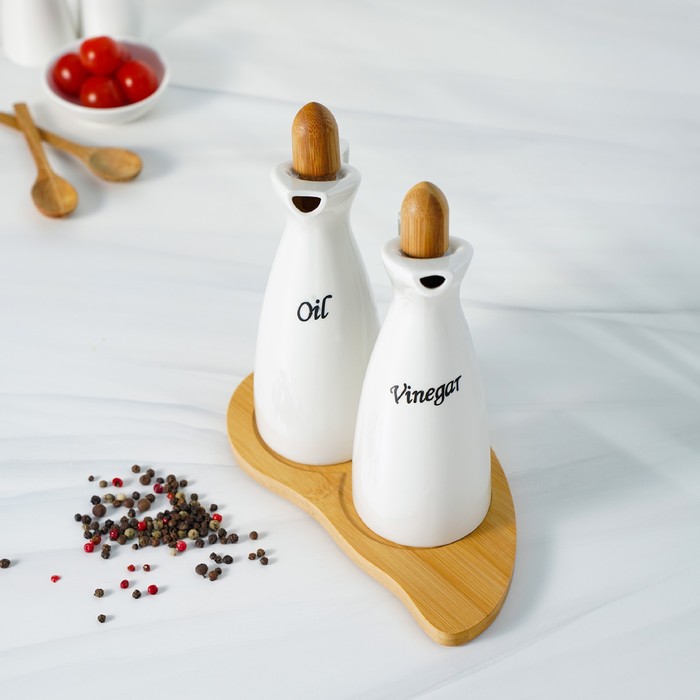 Набор для соусов и масел 230 мл "Эстет", 2 шт, на деревянной подставке