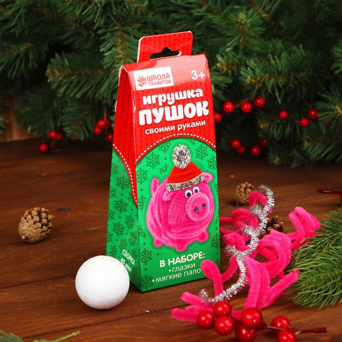 Набор для создания игрушки из меховых палочек "Поросенок" + глаза, пенопластовый шар