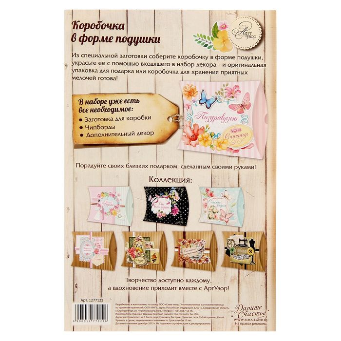 Красивая упаковка — одна из ключевых составляющих хорошего подарка! Чтобы вы могли сделать оригинальную креативную коробочку своими руками, мы создали этот набор. Выразите тёплые чувства и порадуйте адресата неповторимой стильной упаковкой, и ваш подарок точно не затеряется среди других.