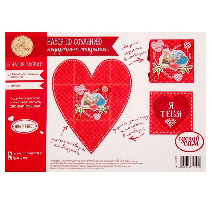 С помощью этого набора ко Дню Всех Влюбленных вы сможете сделать своими руками красивую и оригинальную открытку в форме сердечка. Так вы выразите самые тёплые чувства дорогому вам человеку!