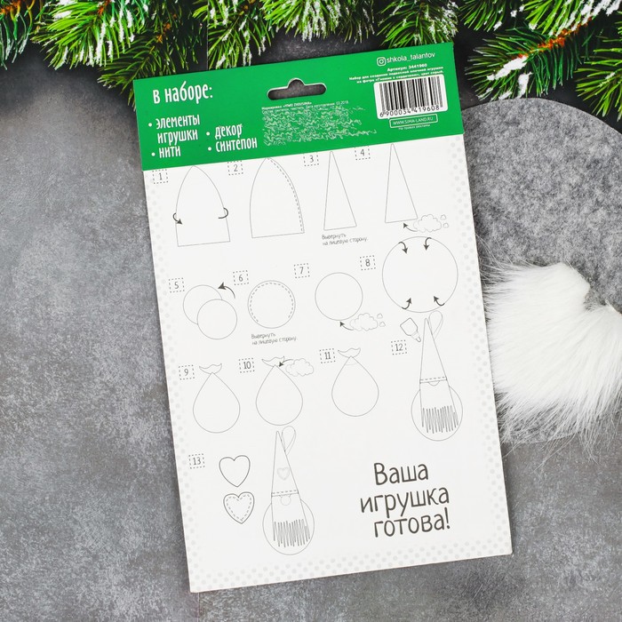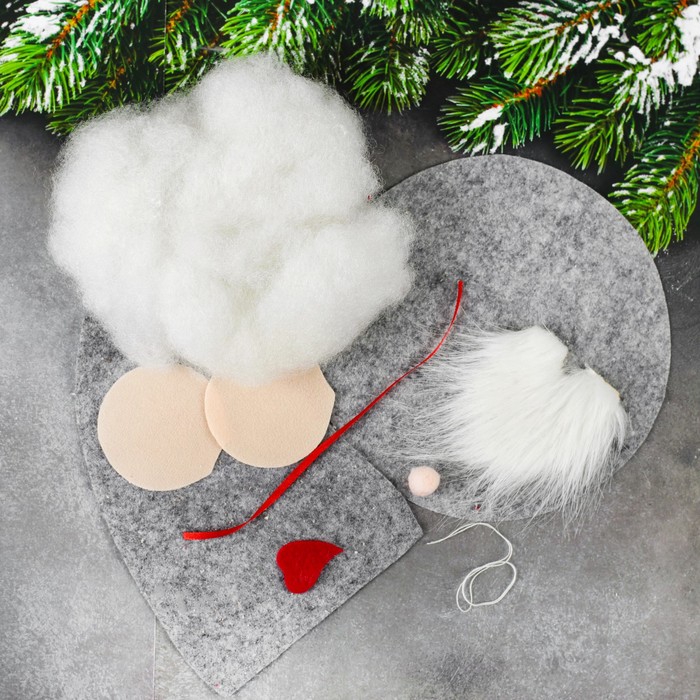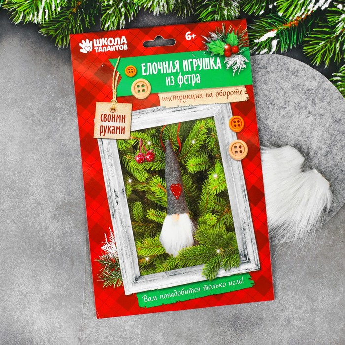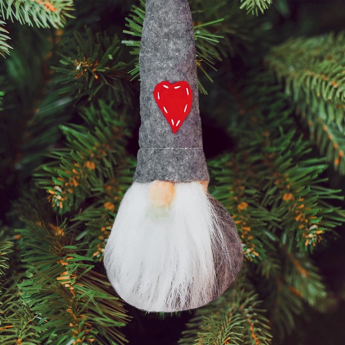 Набор для создания подвесной елочной игрушки из фетра "Гномик с сердечком", цвет серый