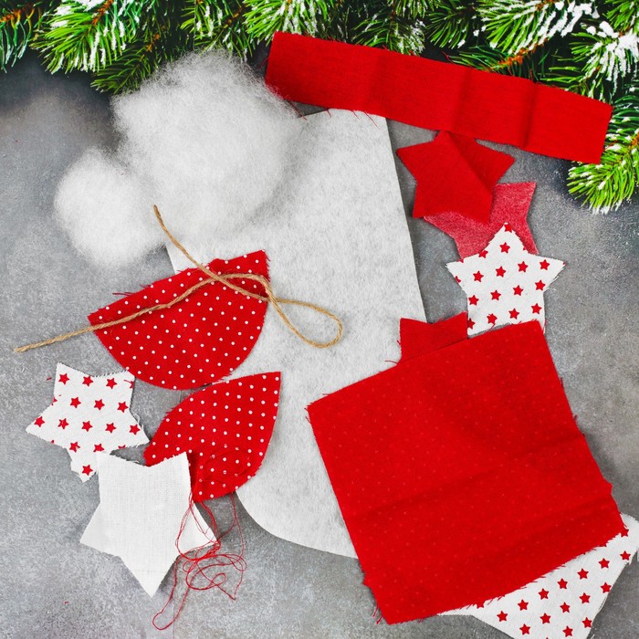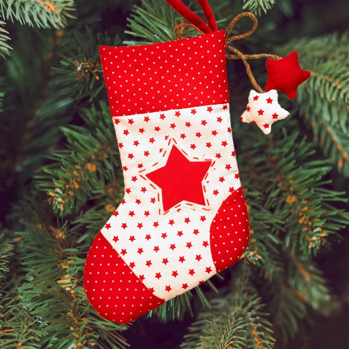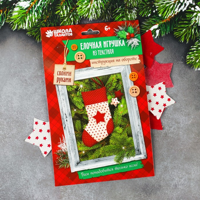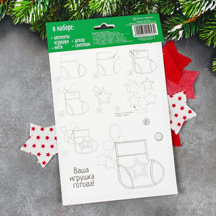 Набор для создания подвесной елочной игрушки из текстиля "Носочек со звездами"