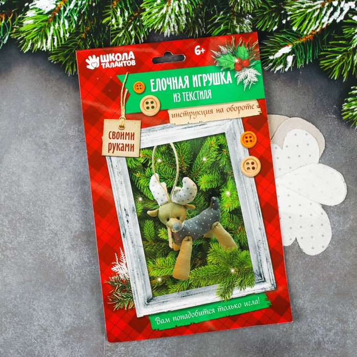 Набор для создания подвесной елочной игрушки из ткани "Олень в шарфике"