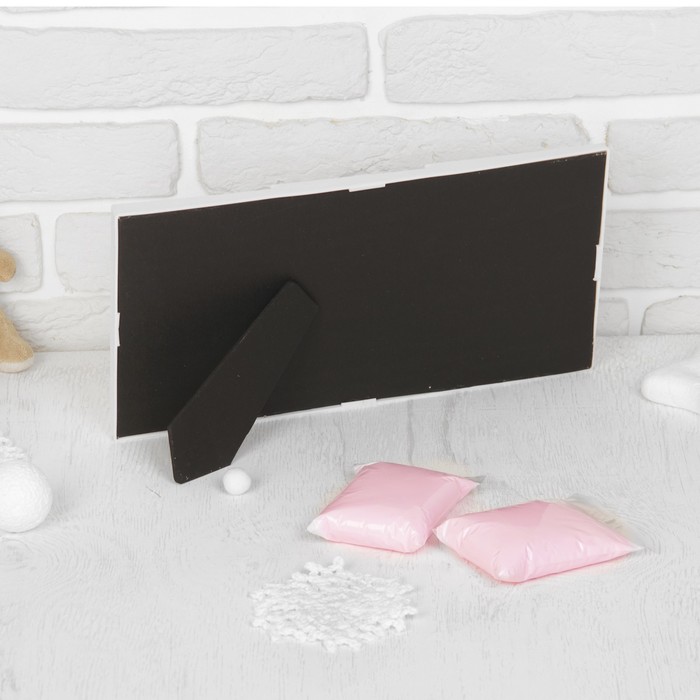 Создать сокровище просто: разомните массу для лепки, раскатайте слой толщиной 2 см. После приложите ручку или ножку малыша. Придайте нужную форму основе и оставьте на час на открытом воздухе. Если первая попытка не удалась, повторите действия, пока масса не успела засохнуть. Затем прикрепите слепок к рамке с помощью клея.