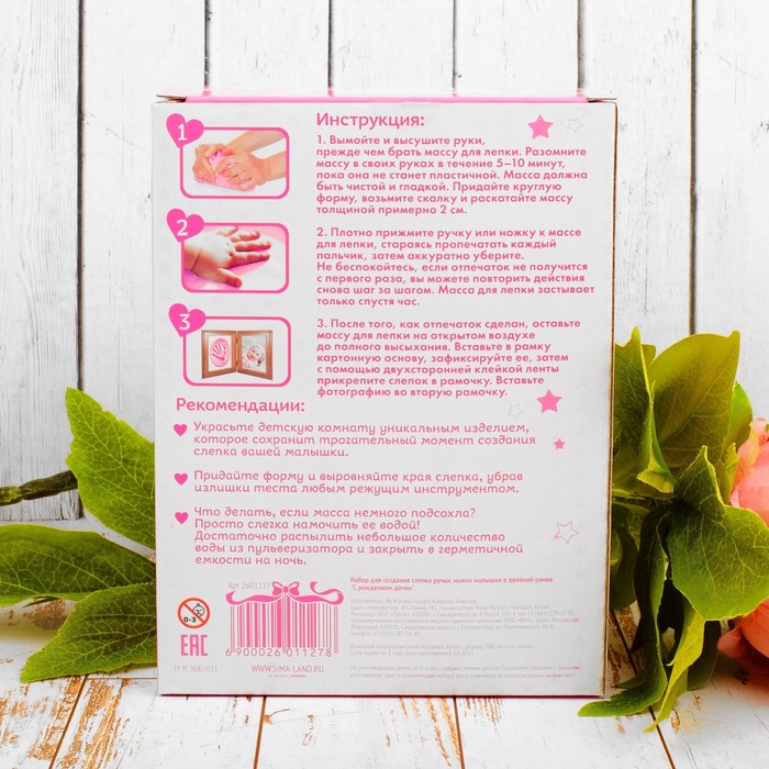 Набор для создания слепка ручки, ножки малышки в двойной рамке "С рождением дочки"