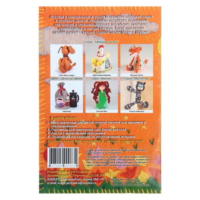 Набор для создания двух пушистых друзей из фетра подойдёт для рукодельниц, которые любят шить игрушки вручную. Зверюшки получаются очень мягкими и трогательными. Они хранят тепло рук мастерицы и создают в доме уютную атмосферу.