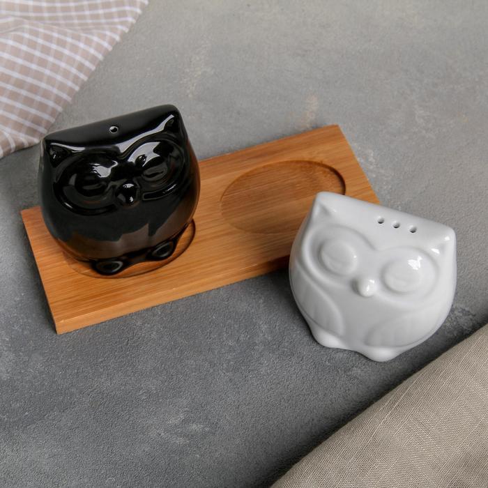 Набор для специй 90 мл "Эстет": 2 предмета на деревянной подставке