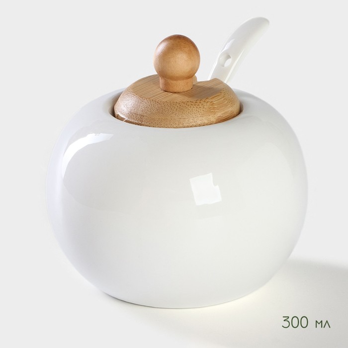 Набор для специй "Эстет", 3 предметы: солонка, перечница, сахарница с ложкой, на деревянной подставке