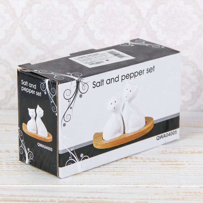 Набор для специй "Эстет. Котята", 2 предмета на подставке предназначен для изящной сервировки стола. Ни хозяйка дома, ни официант в ресторане не забудут подать очаровательные изделия к вашей трапезе.