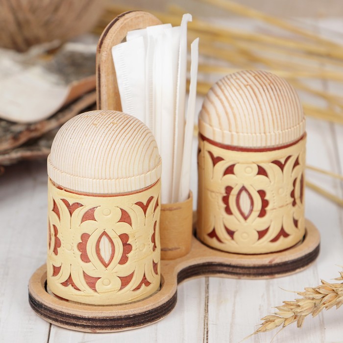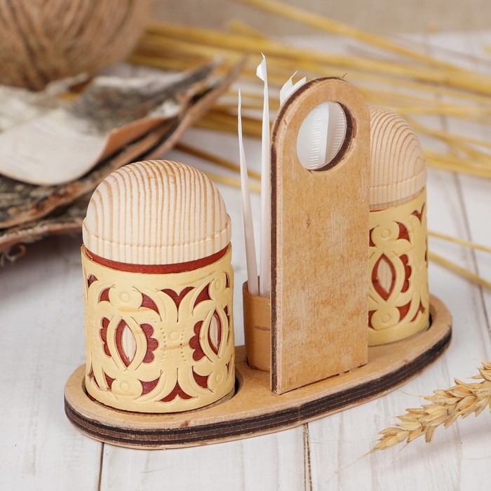 Набор для специй «Резной», с зубочистками, береста