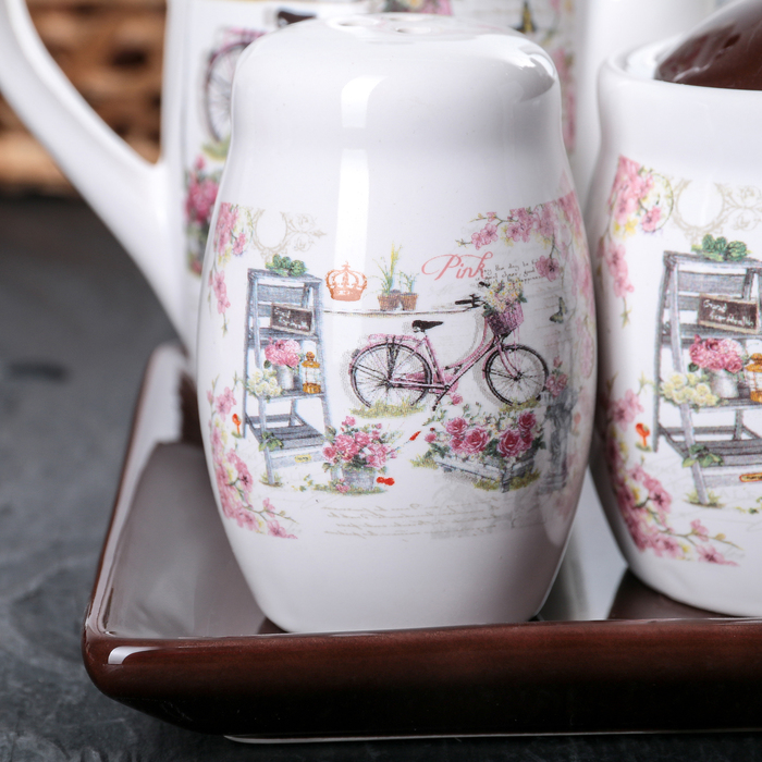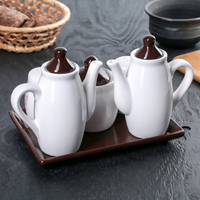 Набор для специй "Римские каникулы", 5 предметов на подставке: соусник 200 мл, сахарница 150 мл, солонка 7х4,5 см
