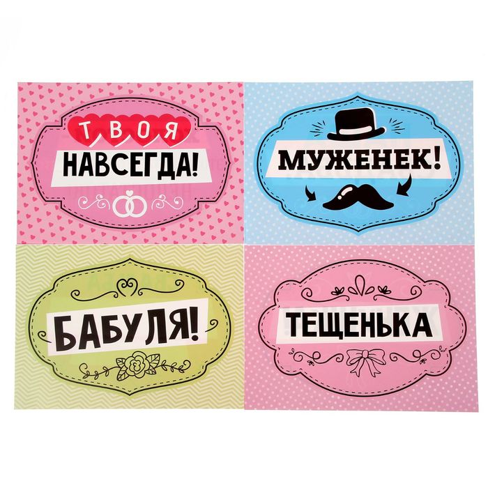Возьмите таблички в руки и фантазируйте. В вашем распоряжении 15 весёлых фраз. Яркие карточки выполнены из картона с двусторонней печатью и поставляются в пакете.